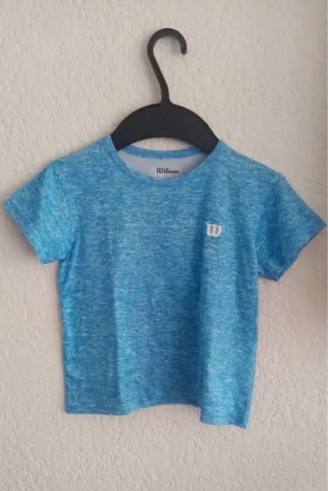 Playera azul para niño talla 3 años con textura muy suave en perfecto estado, marca Wilson