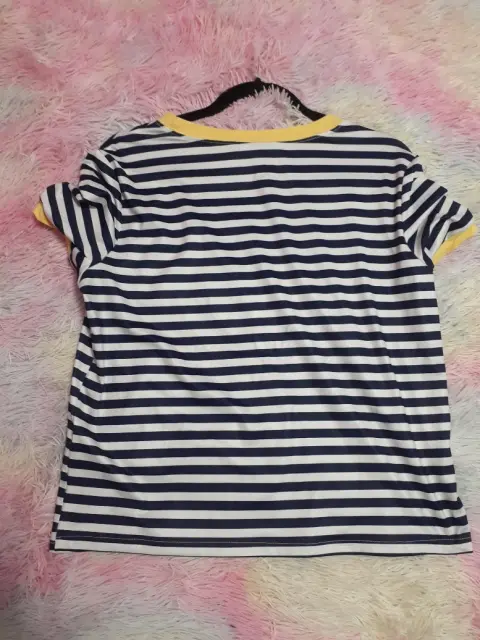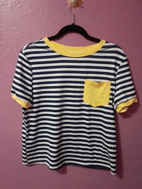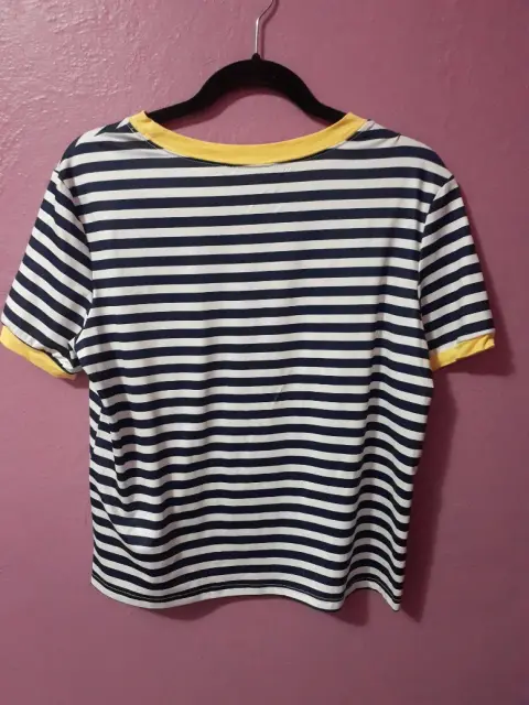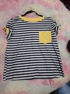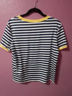 Playera de rayas. Playera de rayas color blanco azul marino y amarillo es talla chica pero yo también lo recomiendo hasta una talla grande sin ningún defecto