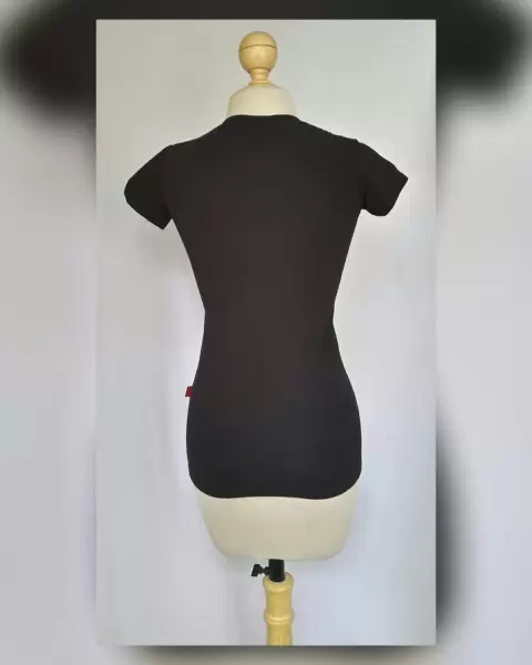 Playera estilo T-Shirt en color NEGRO ÉBANO c/estampado delantero tigre y bandera británica multicolor, cuello pico y manga corta. Por la composición de la tela es stretch. Talla G (REDUCIDA, da mejor a M). Dimensiones cms: 35 hombro, 43 axila, 39 cintura, 46 zona baja, 61 largo, 12 largo manga. 95% algodón, 5% elastano. P/lavado en casa.