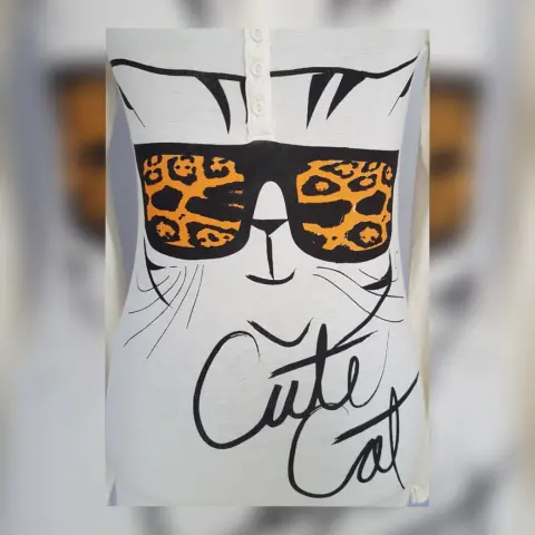 Playera estilo Crew Sweatshirt en color CREAM modelo "Last" con estampado delantero y en tono NEGRO ÉBANO y TIGER, cuello redondo escote profundo y manga larga. Por la composición de la tela es stretch. Talla G. Dimensiones cms: 36 hombro, 47.5 axila, 40.5 cintura, 48.5 zona baja, 65 largo, 65 largo manga. 95% rayón, 5% spandex. P/lavado en casa.
