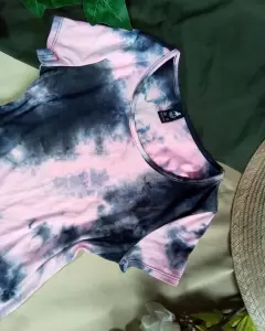 Playera color rosa con negro estilo tie-dye talla XS pero queda a S hasta MTela super suebe y StretchMEDIDAS de costura a costuraHombros 34 cmLargo 43 cm