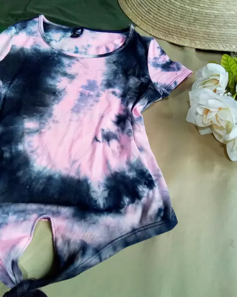 Playera estilo tie-dye. Playera color rosa con negro estilo tie-dye talla XS pero queda a S hasta MTela super suebe y StretchMEDIDAS de costura a costuraHombros 34 cmLargo 43 cm