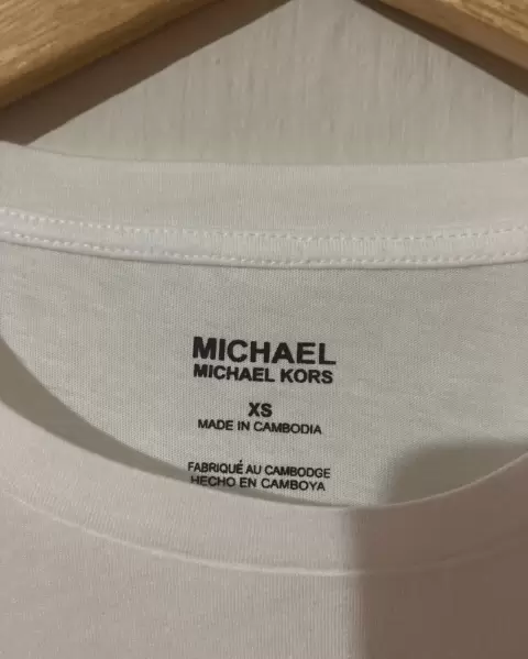 Playera michael kors en talla XS y M, blanca con las iniciales de la marca al frente