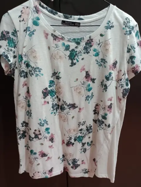 Playera floreada manga corta. Talla M-28 (estira)✨No trae etiquetasMedidas:-Cuello: 25cm- Pecho: 38cm-ancho: 40cm (hombro a hombro)-largo: 60cmEstoy abierta a ofertas. :))Recuerde que también puedo hacerle un paquete de los productos que más le hayan gustado de mi perfil y que desee comprar. 😸📦¡Gracias!
