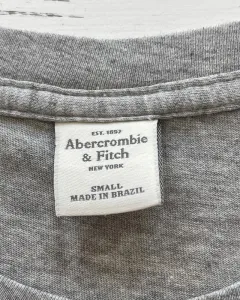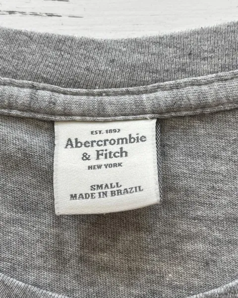 Playera gris Abercrombie & Fitch. Playera 100% algodón, talla: S, medidas: 33 cm de hombros, 37 cm de axila y 62 cm de largo. Tiene una rasgada en la parte trasera inferior izquierda, se ve en la ultima foto.
