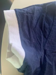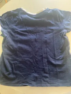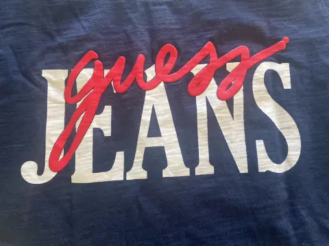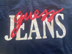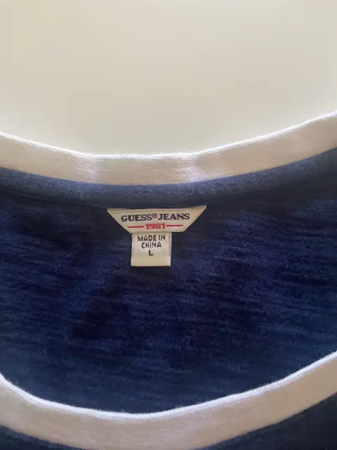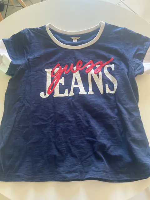 Playera Guess. Playera Guess color azul marino con cuello y puños en color blanco