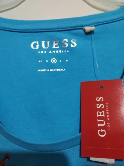 Playera Guess. Playera Guess Talla MCuello redondoManga cortaSin detallesNueva con etiquetaColor azul Claro