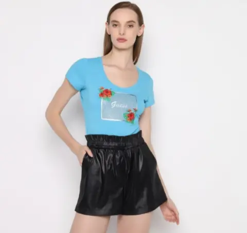 Playera Guess Talla MCuello redondoManga cortaSin detallesNueva con etiquetaColor azul Claro