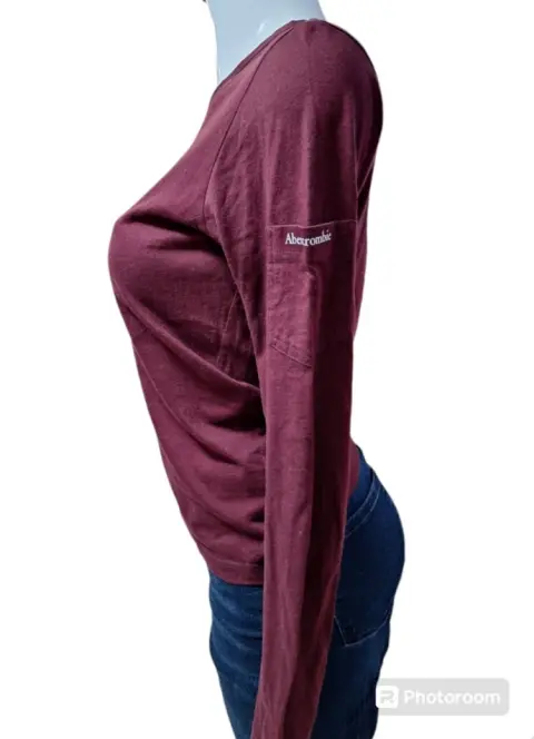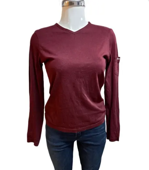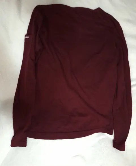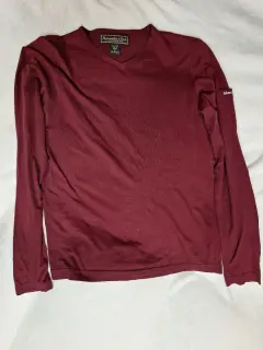 Playera Guinda Manga Larga Talla M, con logo de la marca en un costado de la manga en bolsita, medidas De axila a axila 47cm Largo 61 100% algodón, tiene un horizonte en la parte del pecho, ver última foto
