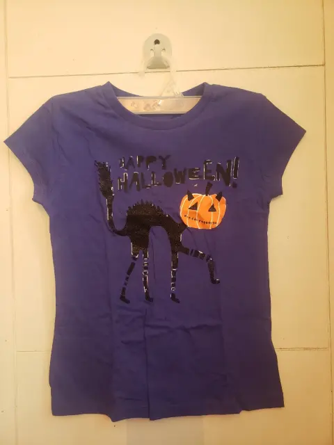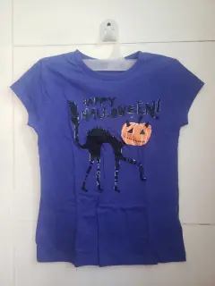 Playera estampada de halloweenTalla: 10 añosManga cortaBrillos en el estampado