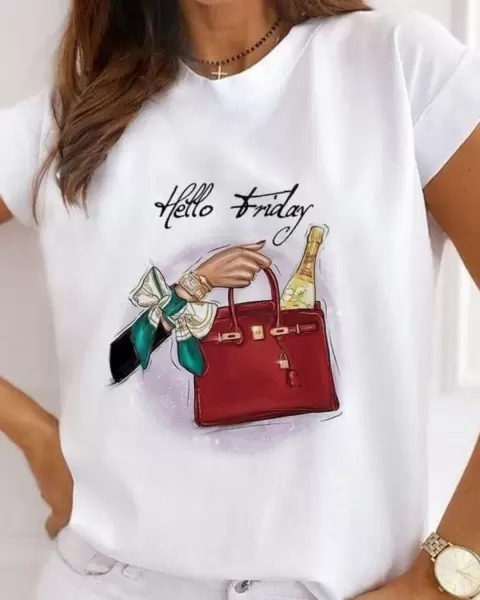 Playera hello friday. 🙋🏻♀️ Hermosa playeras brush para ADULTO, cuello redondo, manga corta, talla S, M, L o XL tela tacto algodon PREMIUM, de temporada. 🥳 Medidas: en las fotos NUEVAS pregunta todas tus dudas, soy fabricante!! 💗📌NOTA: 🔴Envío Lunes, Miércoles y Viernes. Una disculpa y mil gracias por su comprensión