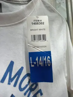 Playera juvenil. Playera de manga corta, talla Kids L 14-16, con estampado al frente. Nueva con etiqueta