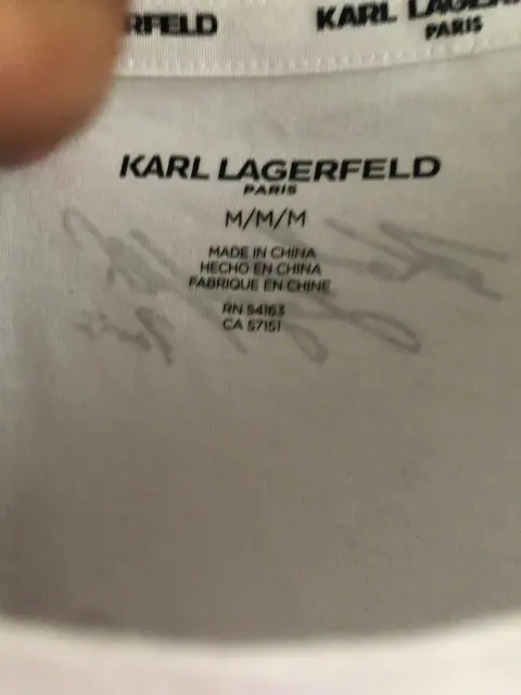 Playera Karl Lagerfeld. Bonita playera Karl Lagerfel con aplicación de pedrería es el mismo modelo k la primera y segunda foto solo que en color blanco es talla M pero puede dar hasta a una L modelo reciente..