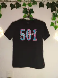 Playera negra Levi's 501 para niño, en excelente condición, talla 12-13. Medidas: ancho 37 cm, largo 59 cm.