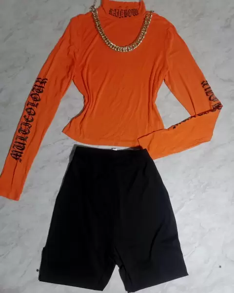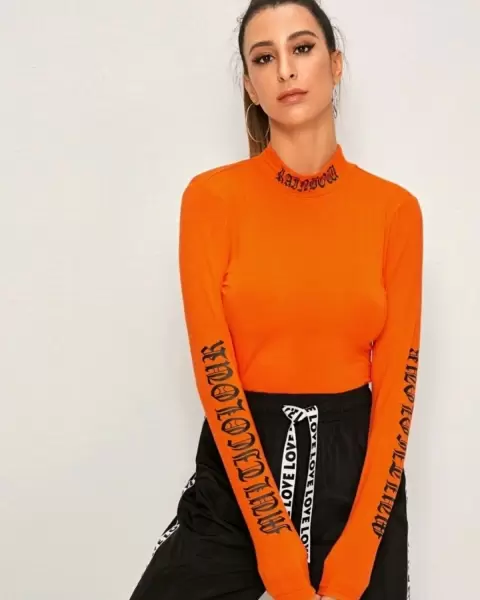 Playera manga larga cuello ruso con estampado en el cuello y mangas