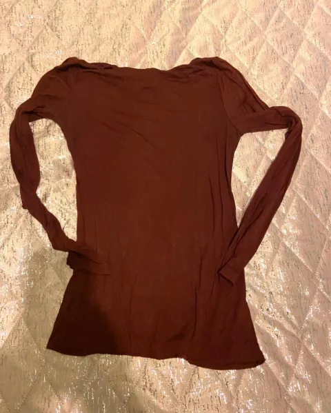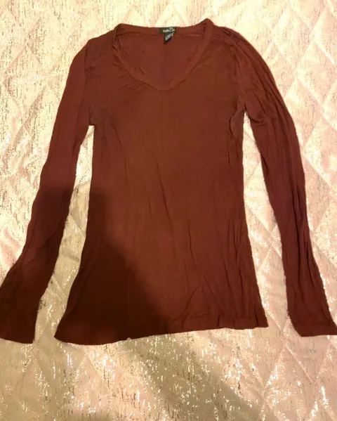 Playera manga larga cuello en V talla mediana color vino