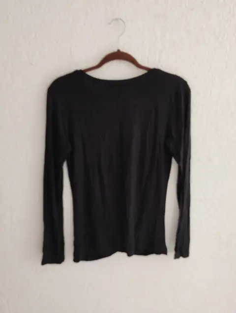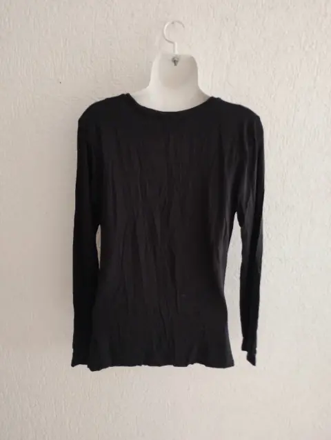 Playera manga larga negra. Playera en manga larga color negro, ligera y que se amolda a tu figura. Medidas: 64cm largo, 44cm de axila a axila y 60cm de mangas.