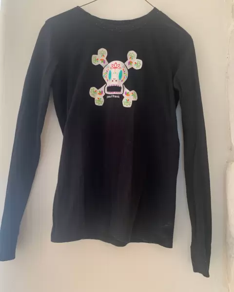 Playera manga larga negra con calavera. Playera manga larga negra marca Paul Frank. con estampado de calavera en el frente