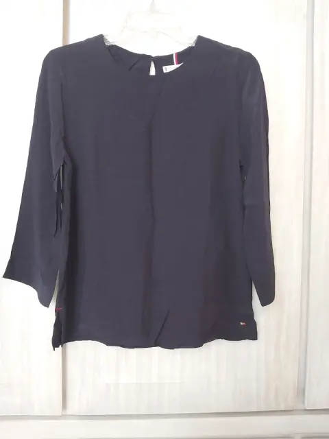 Playera manga larga Tommy Hilfiger. Playera color azul marino de Tommy Hilfiger, con botón el la parte de la nuca, logotipo de la firma en un costado.