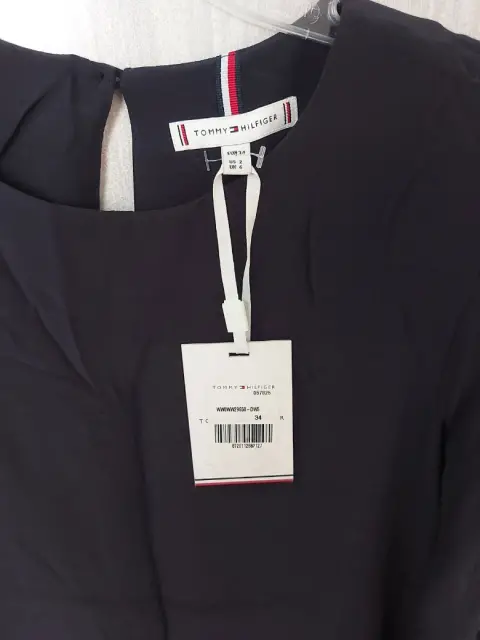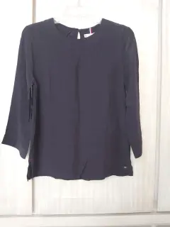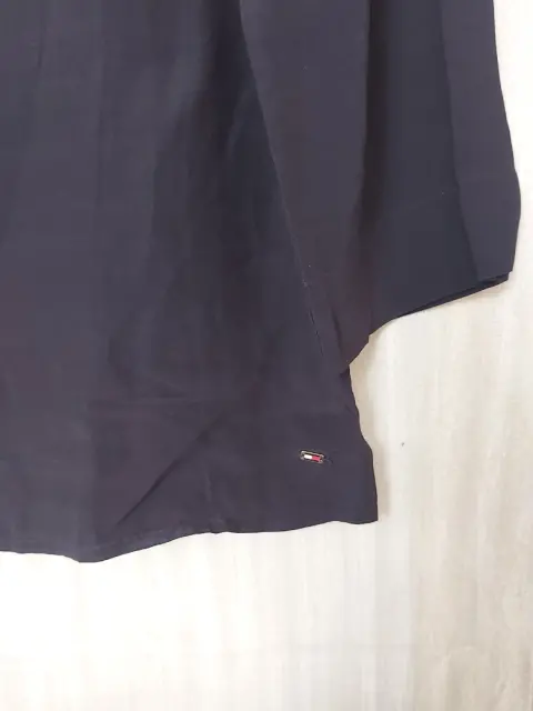 Playera color azul marino de Tommy Hilfiger, con botón el la parte de la nuca, logotipo de la firma en un costado.