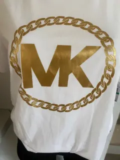 PLAYERA MICHAEL KORS BLANCA GRANDE. PLAYERA BASICA MICHAEL KORS COLOR BLANCA, con estampado de la Marca al frente en color dorado plastificado. TOTALMENTE NUEVA CON ETIQUETAS.