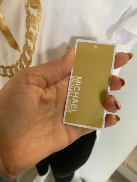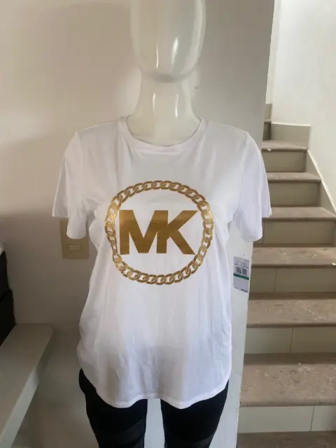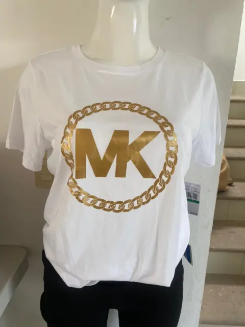 PLAYERA BASICA MICHAEL KORS COLOR BLANCA, con estampado de la Marca al frente en color dorado plastificado. TOTALMENTE NUEVA CON ETIQUETAS.
