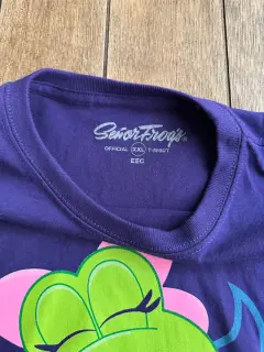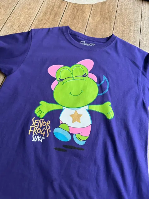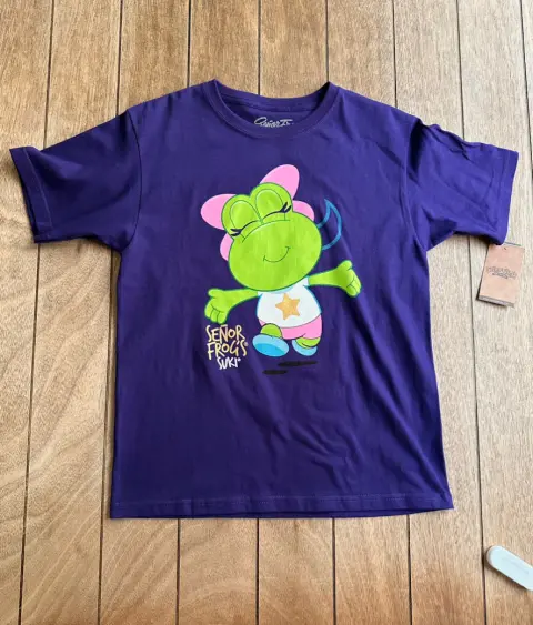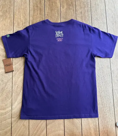 Playera del Señor Frogs para niña talla XXL en color morado con estampado de ranita. También queda a una talla S de adulto. En perfecto estado y sin detalles. Totalmente nueva!