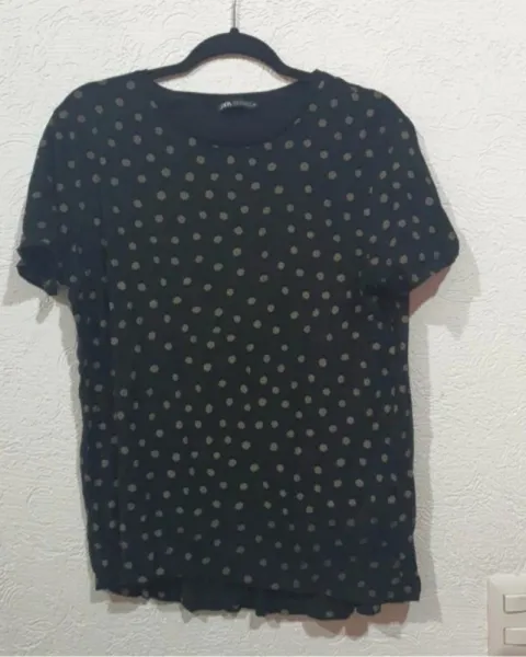 Playera negra con puntos beige. Es una playera muy comoda para un estilo casual
