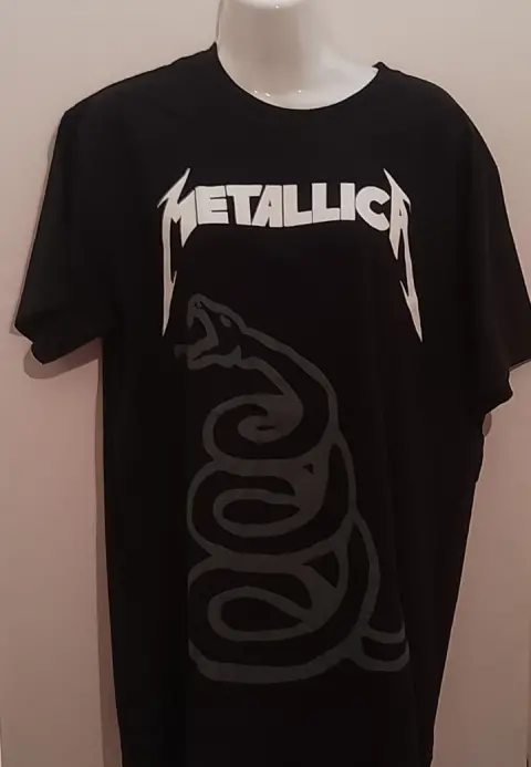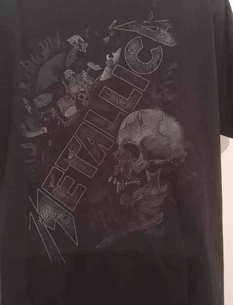 Bonita playera color negra, manga corta, estampado en ambos lados, talla G, mide en hombros 46 cm, en pecho 52 cm, en cintura 52 cm y de largo tiene 78 cm. Tela gruesa, muy bonita, nueva a estrenar