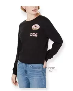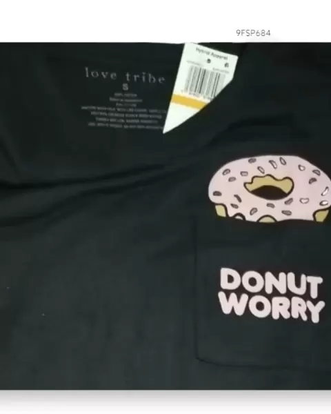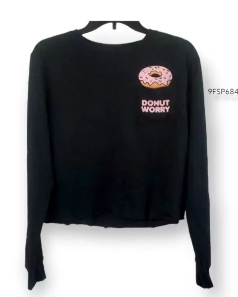 Hermosa playera manga larga negra con estampado de dona, y una bolsa en el lateral superior. Medidas largo 53cm,axila a axila 49cm, largo Manga 62cm, hombro a hombro 43.5