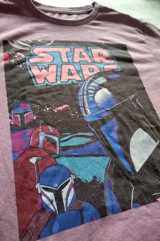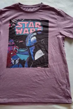 Playera old navy star Wars lila. Playera color lila talla chicaEn la parte de abajo del estampado se nota un poco el detalle por el uso, son como ligeras pelusas, del resto se encuentra en buenas condiciones, no está rota ni tiene hoyos
