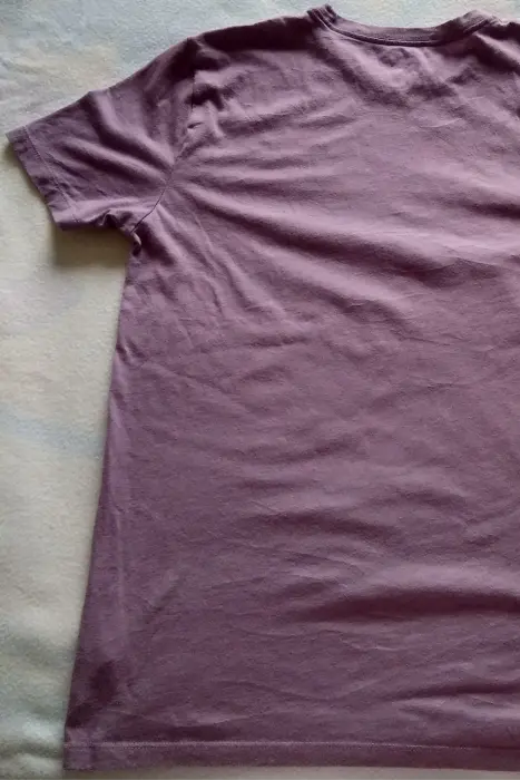 Playera color lila talla chicaEn la parte de abajo del estampado se nota un poco el detalle por el uso, son como ligeras pelusas, del resto se encuentra en buenas condiciones, no está rota ni tiene hoyos