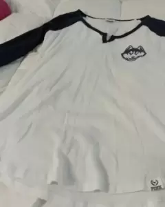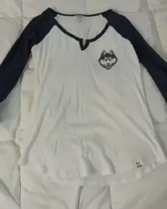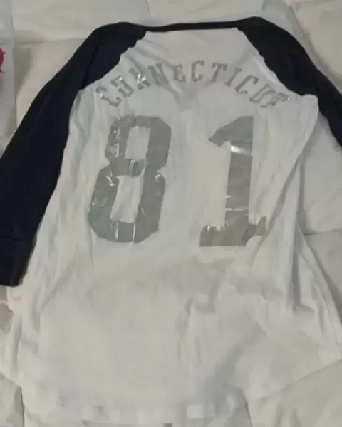 Linda playera , manga 3/4 , color blanco y Azul rey ,logo de la marca y letras en la espalda en color plata , T/M