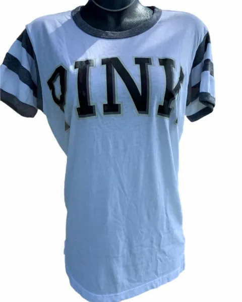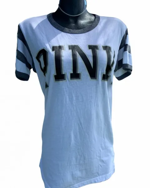 Playera PINK blanco y negro. Playera para Mujer.Marca PINK Victoria’s Secret.Talla XS.Color Blanco con letras negras.