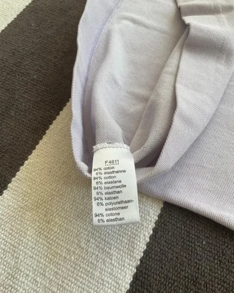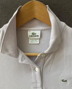 Playera polo lila Lacoste. Playera tipo polo, color lila, 2 botones y manga corta. Talla: 38 (podría quedar a talla XS y S, ver medidas)Medidas: 38 cm hombros, 42.5 cm axila y 53 cm largo.Ligera decoloración.