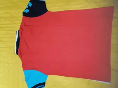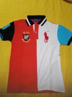 Playera polo niño. Playera polo para niño talla 10 tela fresca de algodón color rojo con blanco, sin detalles.