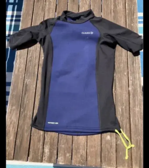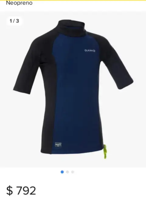 Playera protector sol. Playera surf niño protección solar olaian neopreno talla 8manga corta azulCreado por nuestros equipos de diseño para protegerse del sol durante el surf y bodyboard.Agua con T° sup. a 21 °C. Sesiones de hasta 3 h (aporte de calor)