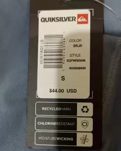 Playera Quiksilver Protección UV 50. Manga larga con protección solar UPF 50, camiseta de surf de manga larga con protección UV incorporada.Hilo reciclado en tejido Composición 50% poliéster, 42% poliéster reciclado, 8% elastanoLa etiqueta dice que es S pero queda perfectamente hasta una talla XLMedidas Pecho 51 cm Manga 65 cm Largo 74 cm