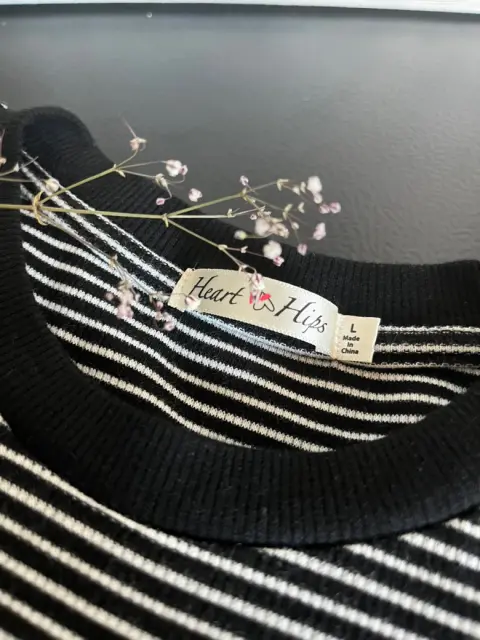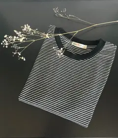 Bonita playera rayada, es talla L pero viene justa. Está completamente nueva.