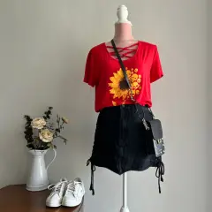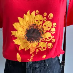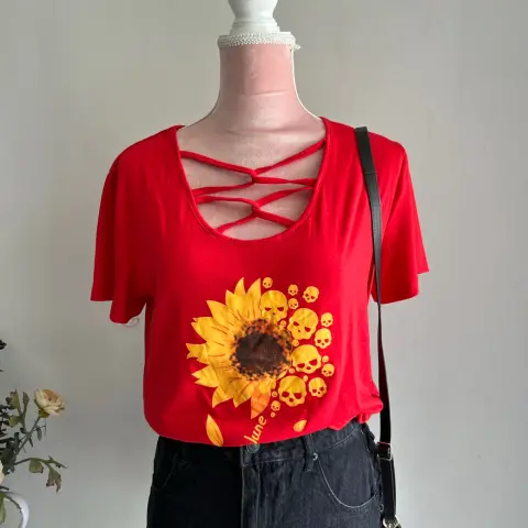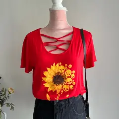 Playera roja girasoles. ✅playera súper bonita✅a estrenar sin etiqueta✅sin detalles✅es muy cómoda✅la tela estira✅talla M✅aprovecha súper precio 😉✅armo paquetes 📦
