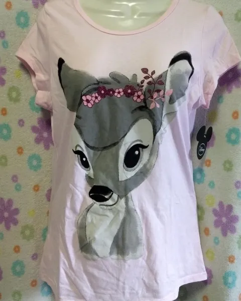 Bonita playera de algodón color rosa con estampado de bambi, nueva con etiqueta