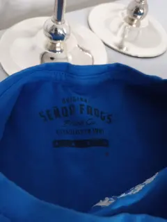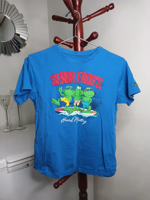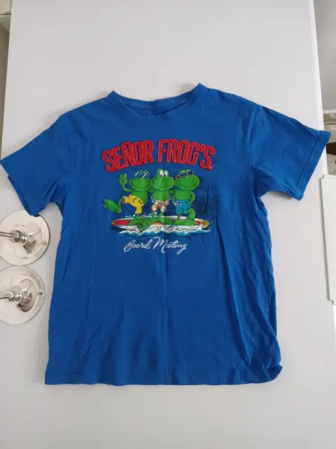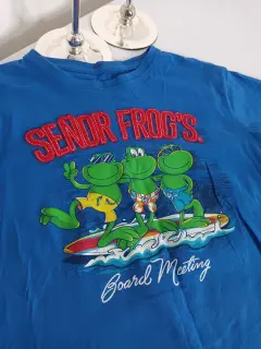 Playera Señor Frogs talla 10. A estrenar sin etiquetaSeñor Frogs✨Playera fresh talla 10, marca Señor Frogs, cuello redondo color azul con estampado en frente de las ranas de la marca, color azul tonalidad Azur y detalles en espalda y hombro de la marca.✅ MEDIDAS- Largo: 53 cm- Pecho: 86 cm- Cintura: 86 cm