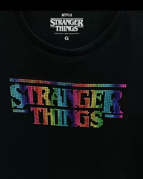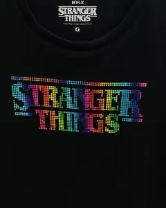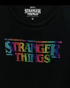 Playera stranger things!!. Bonita playera de moda de la serie Stranger Things con letras vistosas y coloridas talla G pero viene reducida. Totalmente nueva y con etiqueta!!!