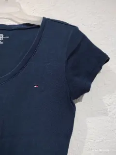 Playera Tommy Hilfiger Talla (S). Talla chica, cuello en V , manga corta 100% algodón .Medidas Axila 80Cintura 70Largo.55Excelente condición tanto de color como de suavidad en prenda.