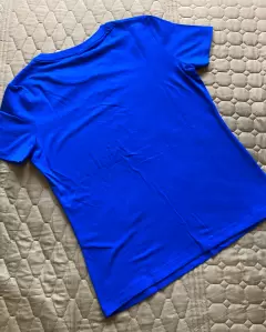 Playera tommy azul rey con letras de la marca al frente en brillos. Talla XS