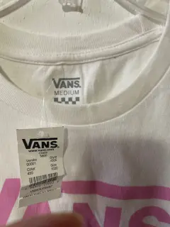 Playera vans. Fresca playera vans en talla M color blanco con el logo de la marca en color rosa