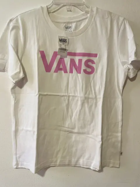 Fresca playera vans en talla M color blanco con el logo de la marca en color rosa