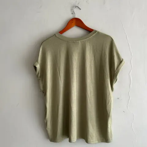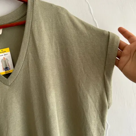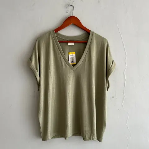 Playera verde escote V. ✅hermosa playera escote V✅nueva con etiqueta 🏷️✅sin detalles✅talla M recomiendo a L✅la tela estira✅aprovecha súper precio✅armo paquetes 📦