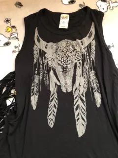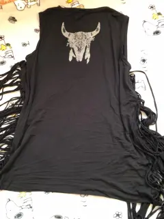 Playera western con barbas. Preciosa playera estilo western con incrustaciones hechas a mano y barbas laterales, la tela se adapta muy bonito al cuerpo.