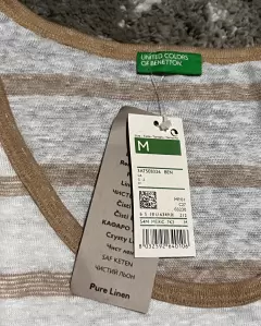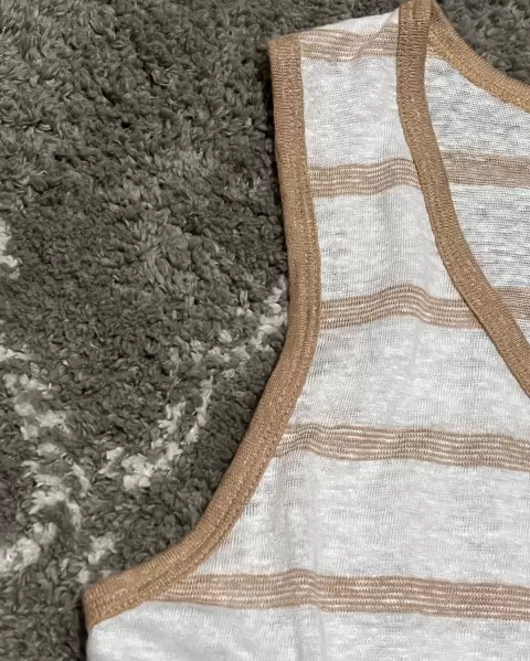 Hermosa playerita sin mangas con rayas café. Nueva con etiqueta. Medidas ax a ax 47 cm largo 65 cm